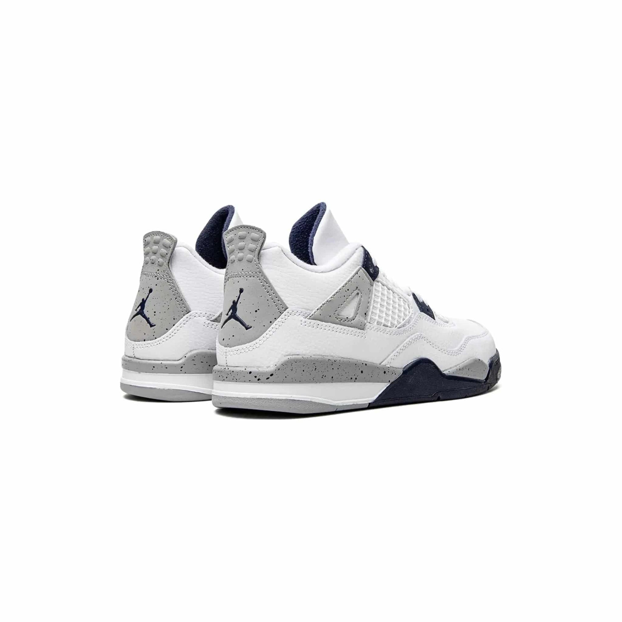 De Air Jordan 4 Retro Midnight Navy (PS) brengt een van de meest geliefde Air Jordan 4 colorways terug op kleiner formaat — perfect voor de jongste sneakerheads in de dop. Deze uitvoering combineert een cleane witte leren upper met donkere navy en cementgrijze details die doen denken aan de iconische OG "White Cement" vibes.