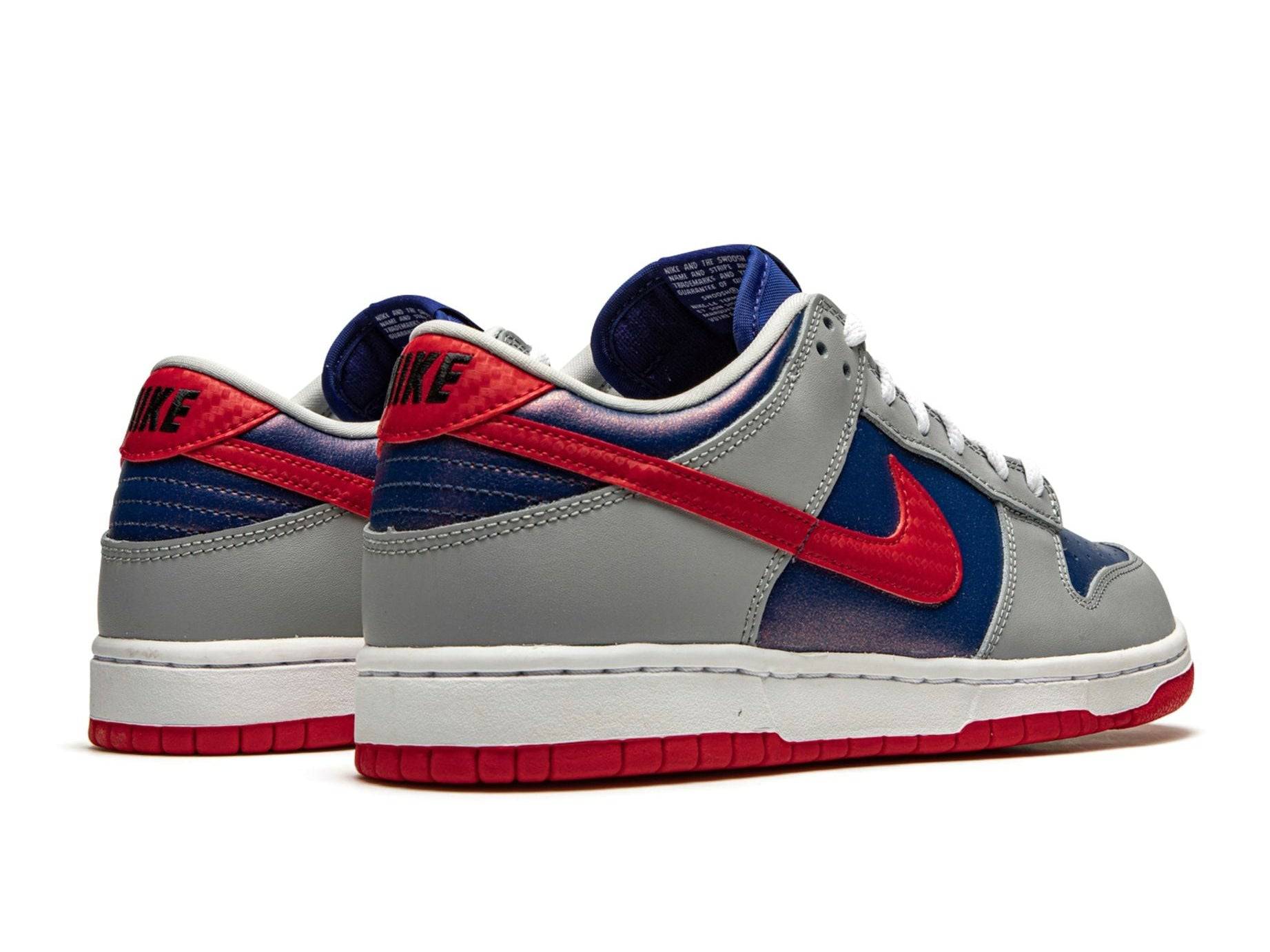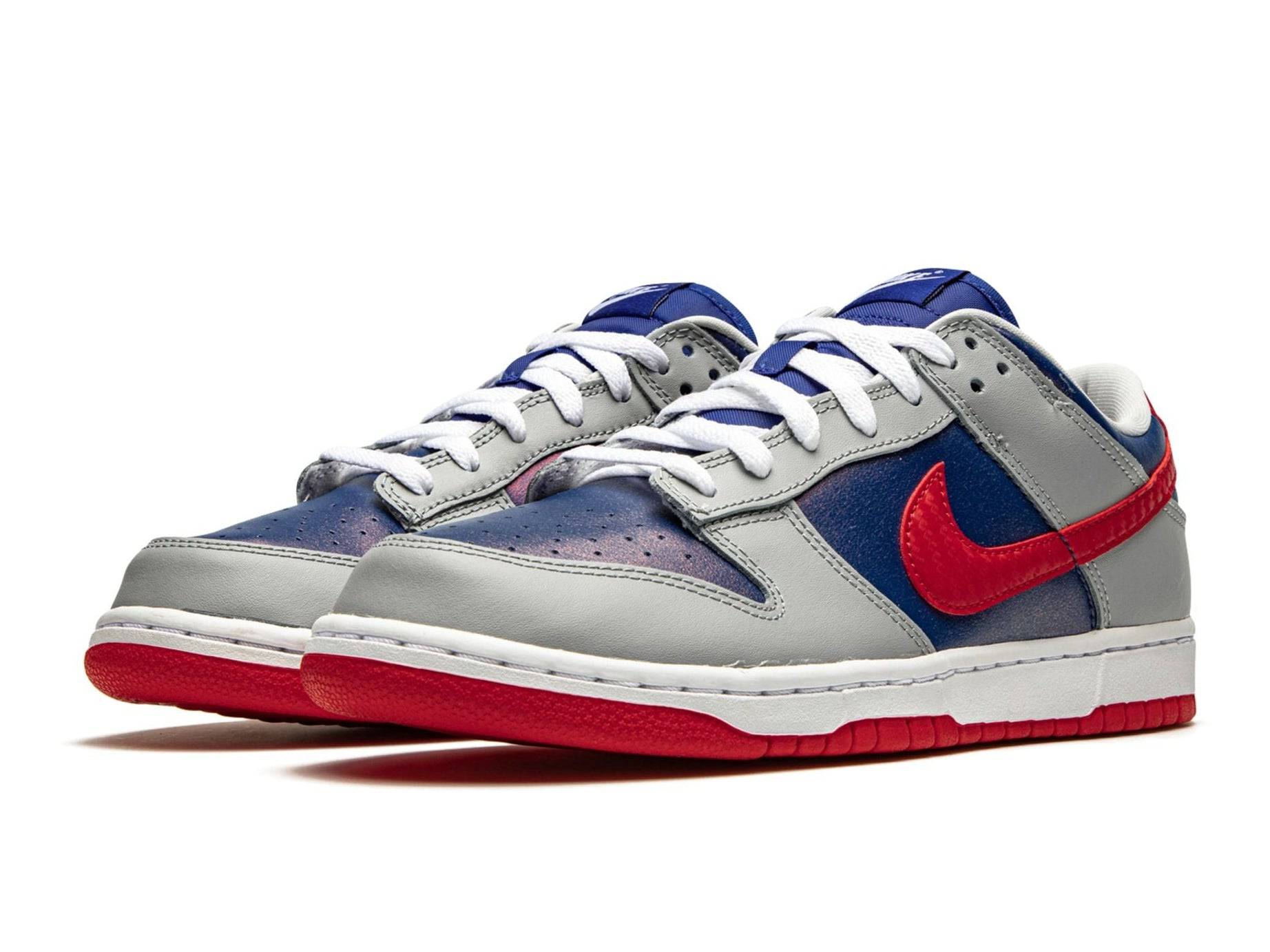 De Nike Dunk Low CO.JP Samba is een must-have voor OG sneakerlovers en nieuwkomers met smaak. Deze release brengt een cultklassieker uit 2001 terug — rechtstreeks uit Japan’s exclusieve CO.JP-lijn — en dat voel je aan alles. De combinatie van metallic blauw met lichtgrijs leer en een felrode carbon-look Swoosh geeft deze Dunk een unieke, futuristische vibe die toch 100% retro aanvoelt.